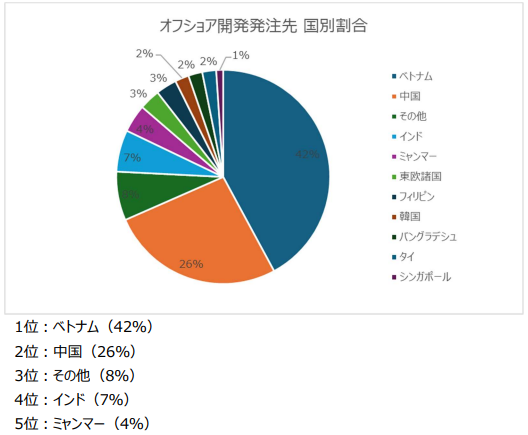 『オフショア開発白書(2024年版)』の調査によると、42%もの企業がオフショア先としてベトナムを第一候補に挙げています。